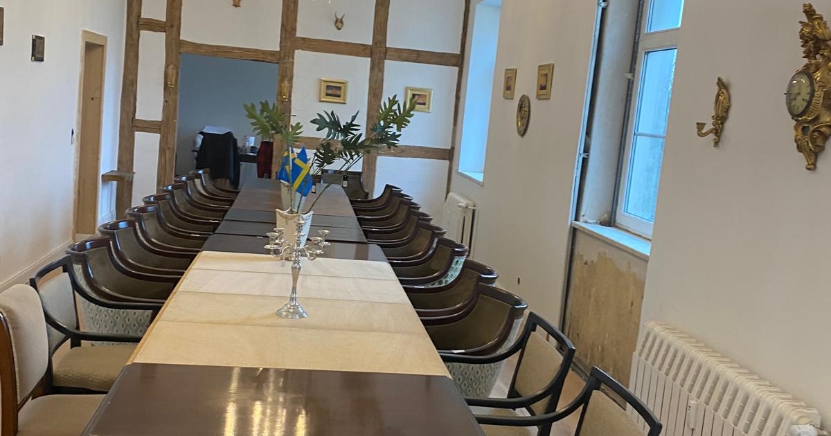 Der Clou des Gutshauses ist allerdings sein 70 m2 großer Saal, der zu Feierlichkeiten jeder Art, aber auch für Tagungen den Gästen zur Verfügung steht. Hier befindet sich auch ein grosser Fernseher.